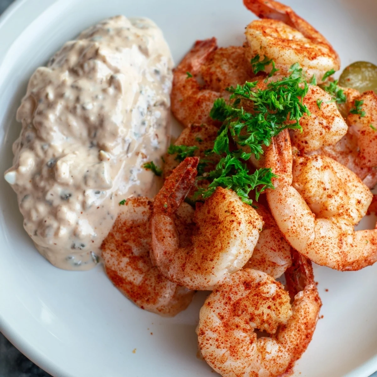 This dish features succulent shrimp lightly seasoned and sautéed, served with a vibrant Cajun remoulade sauce. The sauce blends mayonnaise, Dijon mustard, horseradish, lemon juice, and a medley of spices like smoked paprika and cayenne to create a bold, tangy flavor profile. Simple to prepare, this Southern-inspired appetizer offers a balance of heat and zest, making it great for entertaining or a flavorful start to any meal.