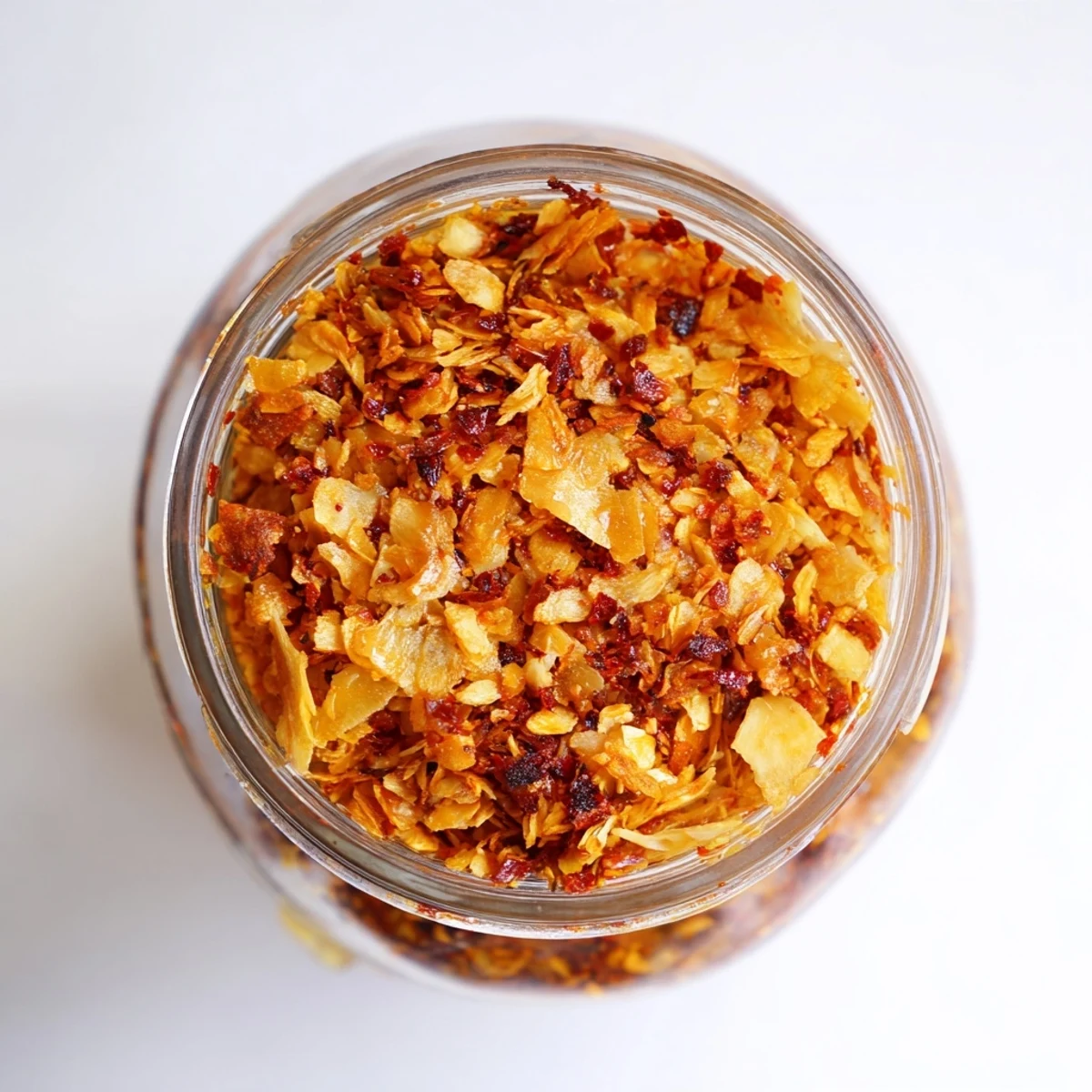 This homemade chili onion crunch delivers restaurant-quality flavor in just 30 minutes. The process involves frying thinly sliced shallots and garlic until golden and crisp, then infusing the aromatic oil with red pepper flakes, smoked paprika, and Sichuan peppercorns for layers of heat and savory depth. The result is a versatile condiment that keeps for a month in the refrigerator, ready to elevate everything from grain bowls and stir-fries to avocado toast and grilled vegetables.